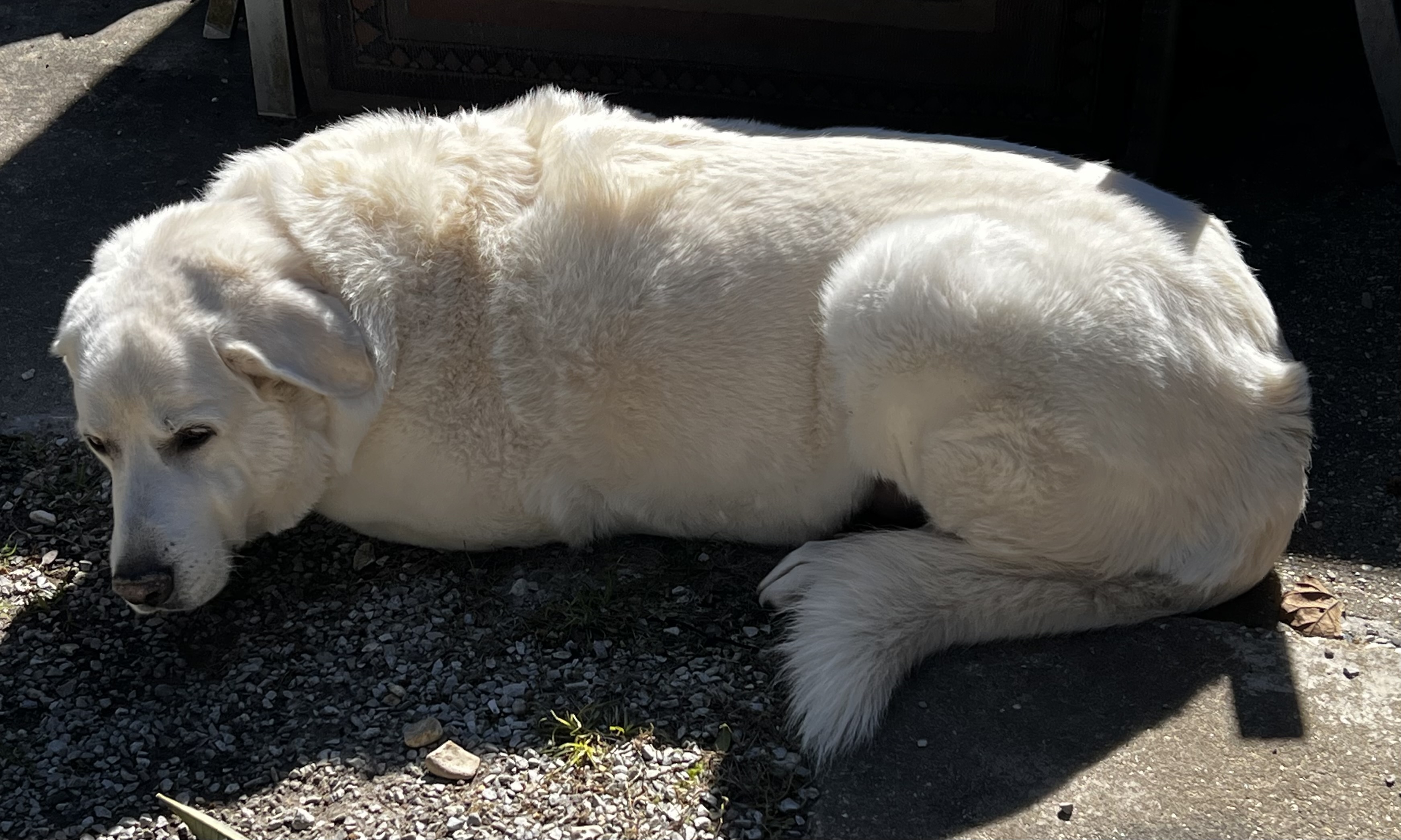 Then entered a new player – my niece’s ‘puppy’ — Apollo, a 150-lb, white Great Pyrenees.